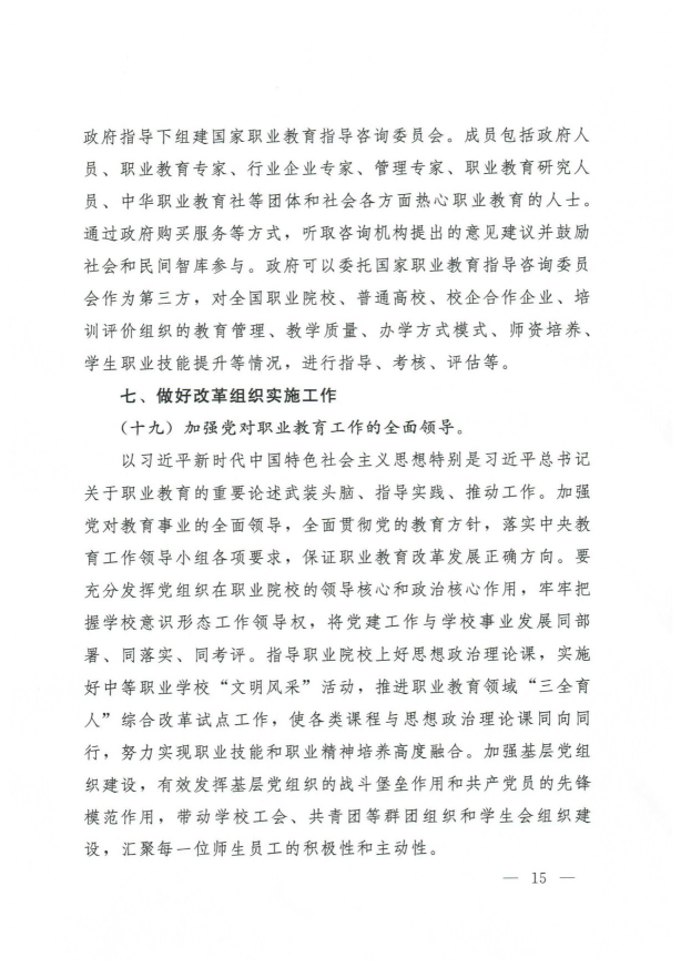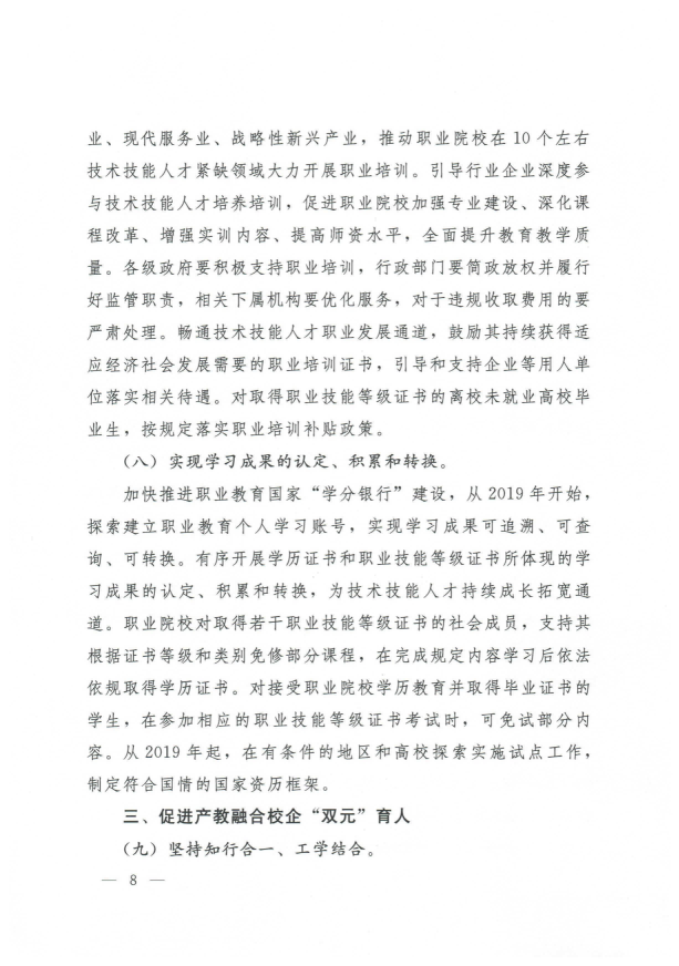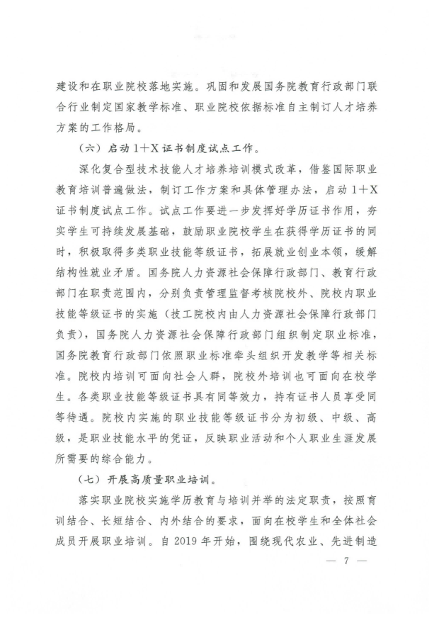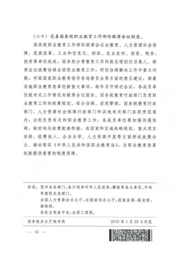 國務(wù)院關(guān)于印發(fā)國家職業(yè)教育改革實(shí)施方案的通知