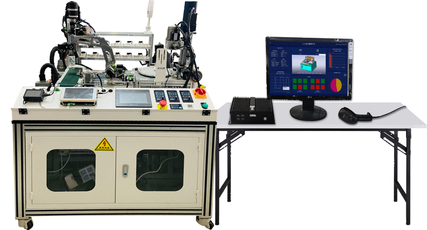 工業(yè)互聯(lián)網(wǎng)綜合應用實(shí)訓臺(型號:SeaIOT-EE-IIOT-02),以離散行業(yè)全流程產(chǎn)線(xiàn)為背景,具有完整的工業(yè)互聯(lián)網(wǎng)網(wǎng)絡(luò )、平臺、安全、標識體系架構,可以支撐工業(yè)互聯(lián)網(wǎng)專(zhuān)業(yè)數據采集、網(wǎng)絡(luò )互聯(lián)、安全防護、邊緣計算、平臺運維、數據分析、標識解析、工業(yè)APP等項目實(shí)訓,還可以開(kāi)展智能制造專(zhuān)業(yè)電氣控制及運動(dòng)控制,人工智能專(zhuān)業(yè)機器視覺(jué)及質(zhì)量模型分析等課程實(shí)訓,滿(mǎn)足學(xué)生全流程參與互動(dòng)、多維度融合應用的需求。