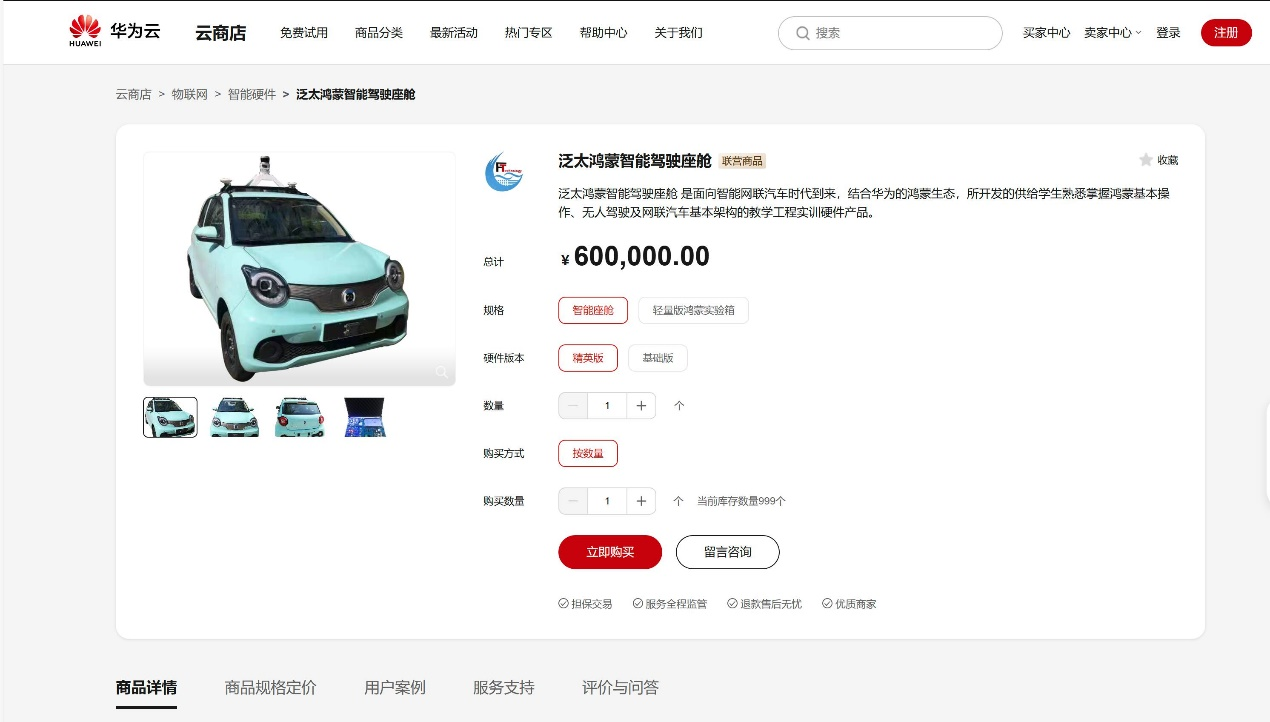 圖 泛太鴻蒙智能座艙成為華為云云商店聯(lián)營(yíng)商品