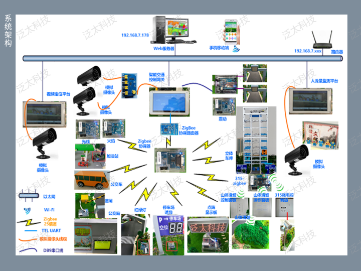 SeaIOT-EA-TRA-02型車(chē)路協(xié)同實(shí)訓系統,是將激光雷達車(chē)與智能交通實(shí)訓系統二者融為一體的一款創(chuàng )新型智能交通實(shí)訓系統。該系統保留原有的現代交通的基礎設施、停車(chē)場(chǎng)、公路災害預警、智能車(chē)等系統中的所有內容,并在此基礎上增加激光雷達車(chē)等相關(guān)車(chē)路協(xié)同內容。系統以城市道路交通為原型,融合了無(wú)線(xiàn)傳感器網(wǎng)絡(luò )、RFID射頻識別、圖像識別、無(wú)線(xiàn)通信、云服務(wù)、M2M中間件等物聯(lián)網(wǎng)先進(jìn)技術(shù),依托部署在交通沙盤(pán)中的智能車(chē)、紅綠燈、公交站、RFID設備、模擬攝像機、網(wǎng)絡(luò )攝像機、Android網(wǎng)關(guān)、圖像服務(wù)器等設備,實(shí)現智能車(chē)、紅綠燈控制、公交站自動(dòng)播報、路燈控制、智能停車(chē)場(chǎng)、違章抓拍、車(chē)牌識別、人流量檢測、公路災害智能預警等功能。在該系統道路上可同時(shí)運行磁導航車(chē)和激光雷達車(chē)。