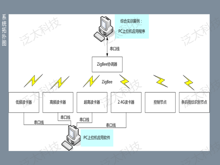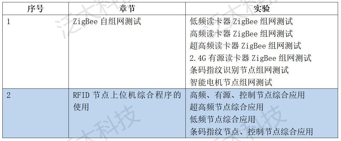 該產(chǎn)品包含125KHz低頻模塊、13.56MHz高頻模塊、915MHz超高頻模塊、2.4GHz有源讀寫(xiě)模塊、條碼指紋節點(diǎn)、智能電機控制節點(diǎn)、以及ZigBee協(xié)調器。實(shí)驗課程重點(diǎn)放在對各個(gè)頻段RFID模塊的管理、控制和上位機程序的應用開(kāi)發(fā)上,學(xué)生可以利用開(kāi)放的通信協(xié)議,使用上位機編程語(yǔ)言(C#)編寫(xiě)上位機應用程序與RFID模塊、二維碼指紋識別節點(diǎn)、智能控制板進(jìn)行數據交互,實(shí)現各種物聯(lián)網(wǎng)應用場(chǎng)景。產(chǎn)品外觀(guān)如圖所示。