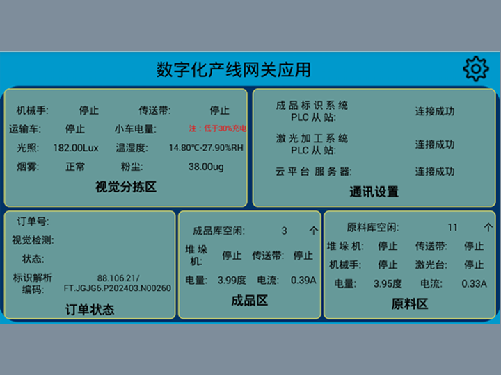 系統涵蓋邊緣服務(wù)器及工業(yè)互聯(lián)網(wǎng)平臺、工控機、工業(yè)現場(chǎng)總線(xiàn)網(wǎng)絡(luò )、PLC工業(yè)控制器及HMI觸摸屏、采煤機械裝置、機械手、煤流輸送帶、原煤礦石、稱(chēng)重傳感器、運輸小車(chē)、電子圍欄、攝像頭、機器視覺(jué)檢測模塊,以及粉塵、可燃氣體、溫濕度、風(fēng)速等煤礦礦區環(huán)境監測傳感器等工業(yè)常見(jiàn)設備,結合工業(yè)智能網(wǎng)關(guān)、邊緣服務(wù)器及工業(yè)互聯(lián)網(wǎng)平臺,通過(guò)工業(yè)現場(chǎng)總線(xiàn)和無(wú)線(xiàn)自組網(wǎng)通信技術(shù),實(shí)現煤礦開(kāi)采、煤流運輸、煤礦輸送、通風(fēng)防塵、安全監控等整體生產(chǎn)流程,達到工業(yè)生產(chǎn)跟蹤、產(chǎn)線(xiàn)生產(chǎn)數量統計、設備運行狀態(tài)監測、質(zhì)量統計、生產(chǎn)流程追溯等智慧化管理。